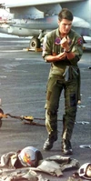 Despite being reprimanded for his actions, Maverick would later be recalled to TOPGUN, having been brought back to train a new group of pilots consisting entirely of former graduates of the program, including Goose's son Bradley, now a Lieutenant under the callsign of "Rooster".[1] Following his arrival to Top Gun, he visited a local bar, owned by his former lover Penny Benjamin. While attending a party at this bar, Maverick witnessed many of the younger pilots partying together, with many singing "Great Balls of Fire", played by Rooster on the piano. This caused painful memories to resurface for him, including ones of both him and Goose partying amongst fellow aviators. As well as the day Goose died.
